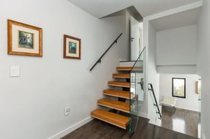 The biggest visual changes come from new materials and an updated railing system. Replacing carpet with wood treads, switching to metal balusters, or opening closed stair risers changes how the whole staircase looks. A glass railing or open-riser design also changes how light moves through the space.